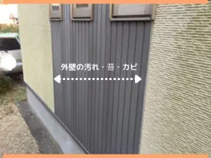 コチラのお写真は、外壁の汚れ、苔やカビが繁殖してしまっているお宅です。