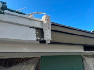 先日は、屋根まわりの付帯部である破風板(はふいた)と鼻隠し(はなかくし)の塗装作業を行いました!