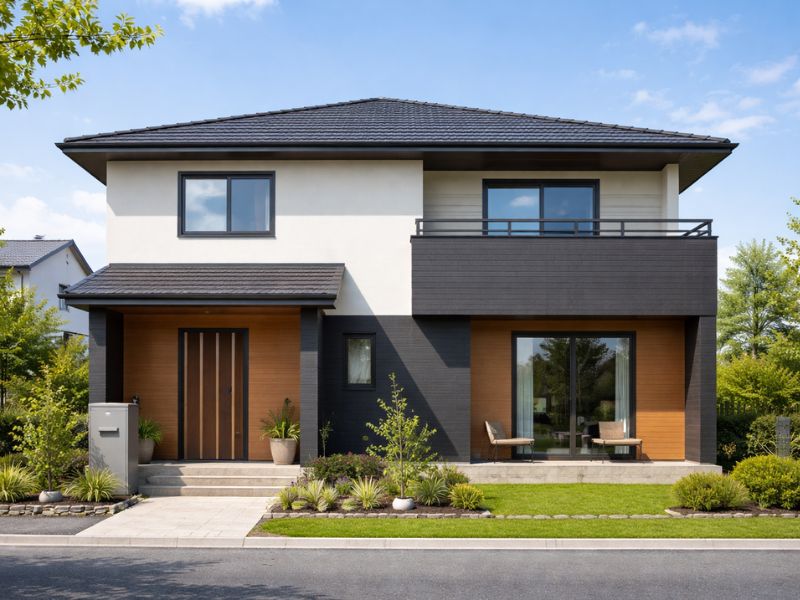• モダン: 「引き締め」が命です。外壁のベースは明るいライトグレーや白にし、窓枠や雨樋、手すりなどの細部を「ブラック」で統一すると、非常に洗練された印象になります。